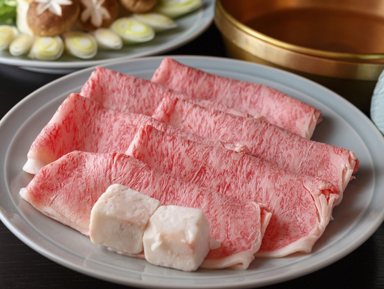 しゃぶしゃぶ、すき焼き、ステーキ、会席料理にはきめ細かい霜降りの米沢牛や山形牛、黒毛和牛を使用。
