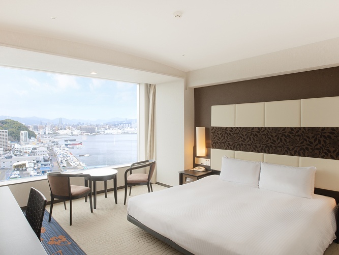 瀬戸内海のパノラマを楽しめる高層レストランや温泉、スパなどのウエルネス施設等を備えたアーバンリゾートホテル。