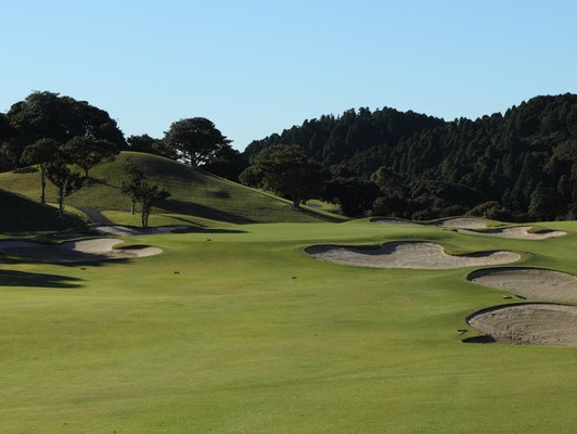 コース内、要所要所に配した110のバンカーが名物、「初心者には優しく、しかし上級者には難しく」というコンセプトで設計されている18ホール。