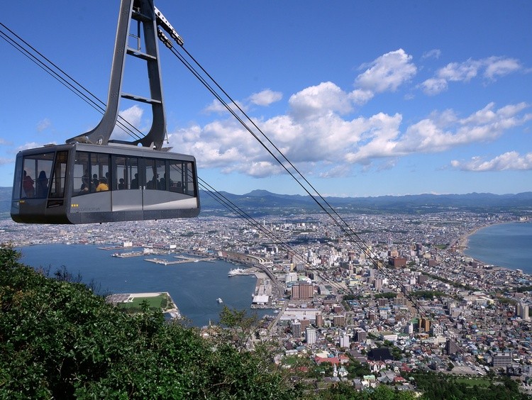 函館山ロープウェイは、海抜334mの山頂までわずか3分で到達します