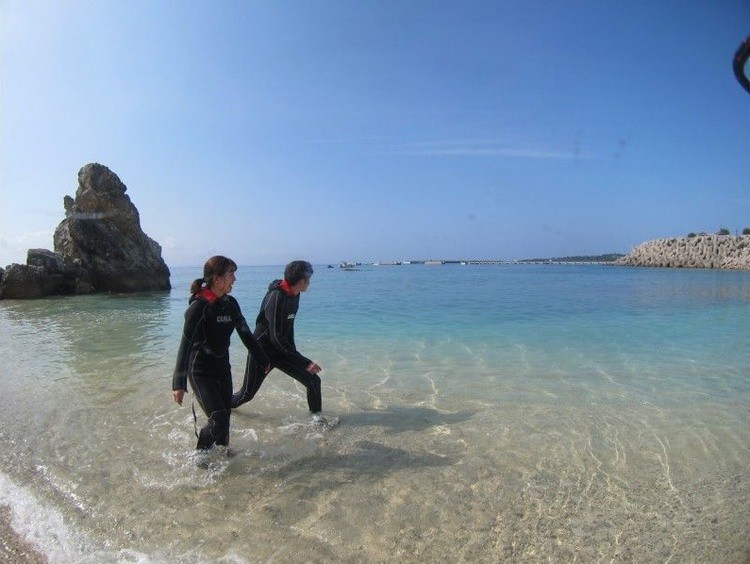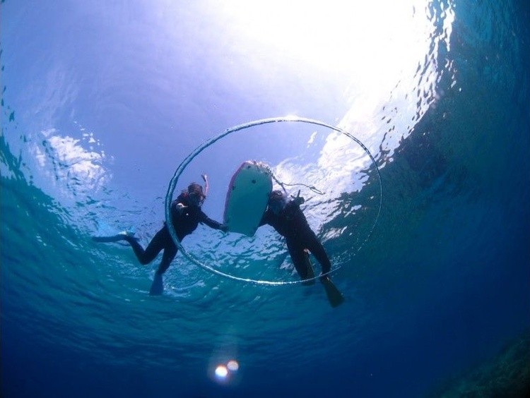【沖縄・北部・本部】美ら海水族館近く、綺麗な珊瑚と白い砂地が広がる、ゴリラチョップ でスノーケル!