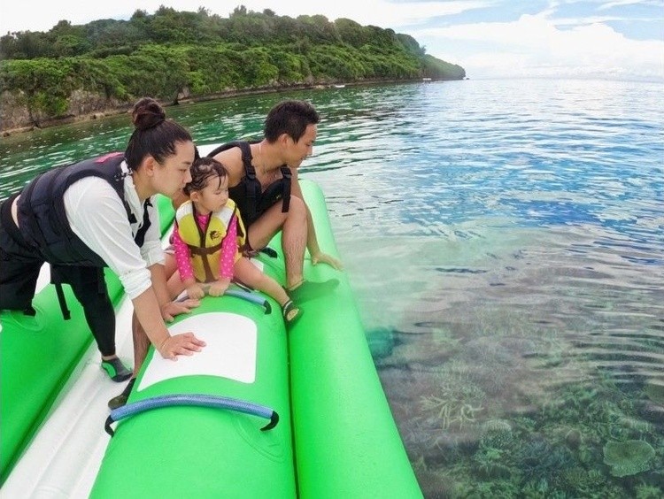 ウミガメの棲む海でシュノーケリング バナナボートに乗ってポイントへ移動 4Kカメラ(GoPro)撮影