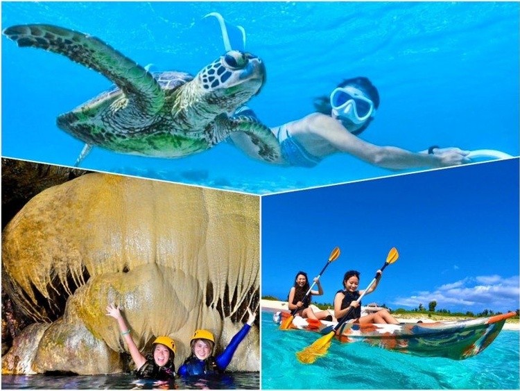 【宮古島/1日】島満喫セット(ウミガメシュノーケリング&パンプキン鍾乳洞&シーカヤック)★送迎OK!写真無料